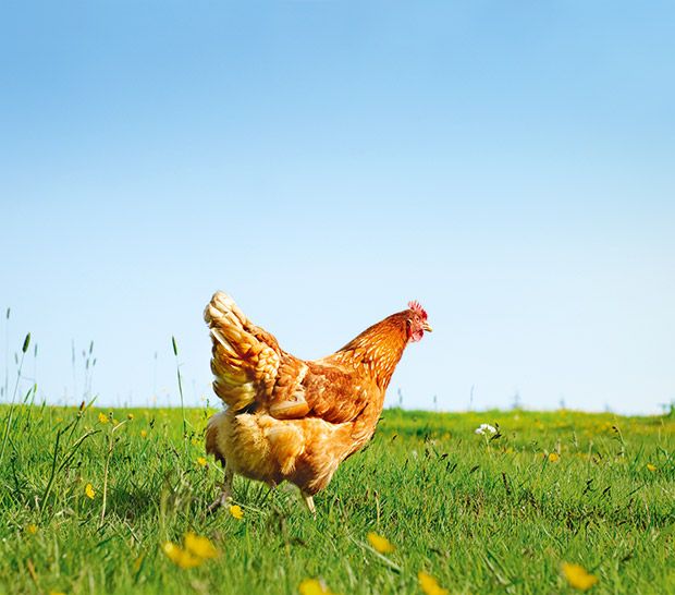 Nuestras gallinas pasan casi toda su vida al aire libre, comiendo insectos, pasto y granos orgánicos.